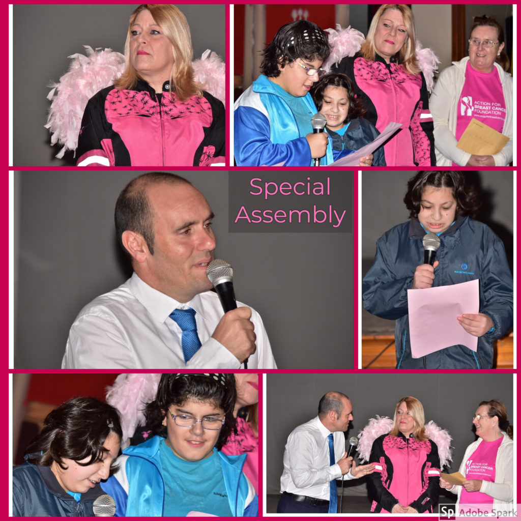 Our school’s headmaster during a special morning assembly, presented The Action for Breast Cancer Foundation with the sum of €500 collected on behalf of students and staff during the Pink October activity held earlier last month. Thanks to all the participants in this activity.